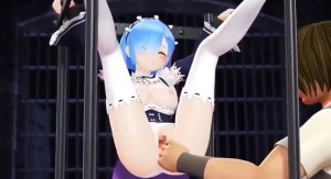 可愛い青髪のメイドさんは男達に縛り付けられ体を蹂躙される